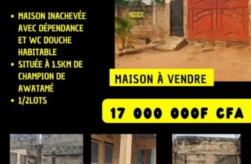 Maison Inachevée avec WC douche habitable construite sur 1/2 lot à Awatamé.